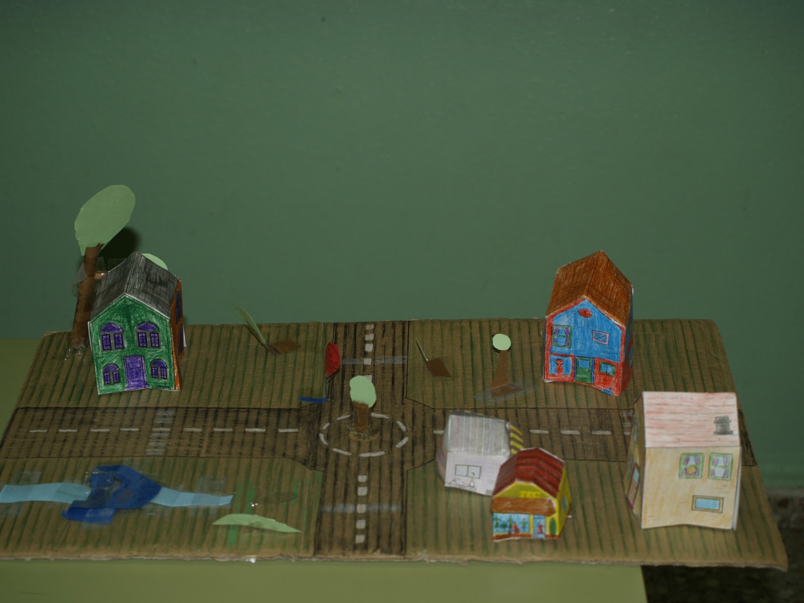 We were working about the town and we made towns with houses, cinemas, banks, parks.... You can see pictures of us with our towns